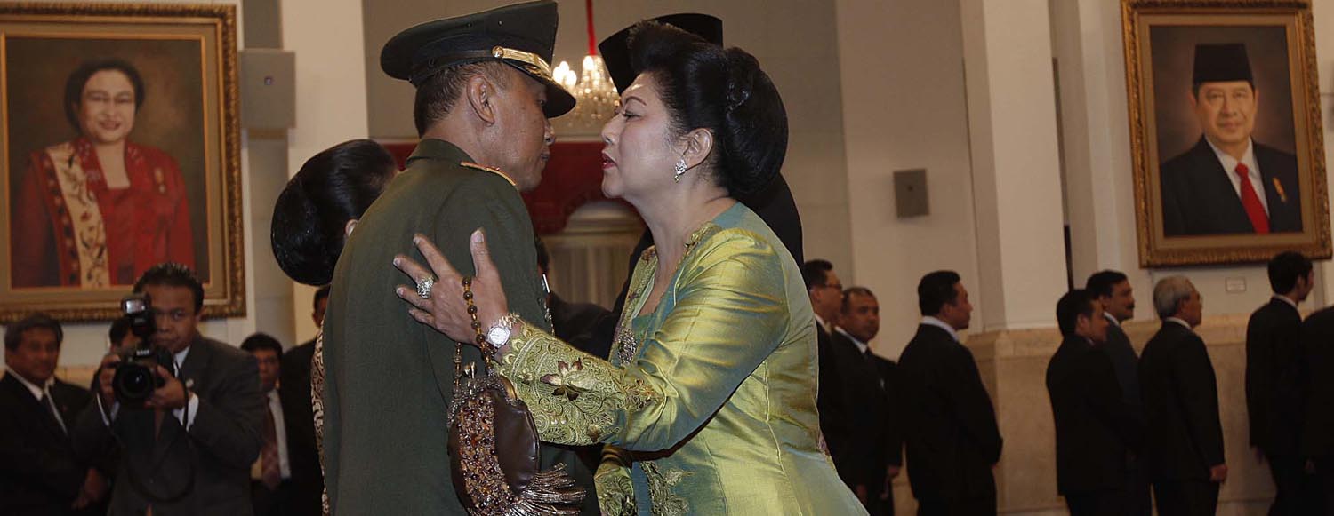Photo courtesy of official website for the President of the Republic of Indonesia: First Lady, Ibu Ani Yudhoyono congratulations her brother, LTGEN Wibowo, at his promotion ceremony.
